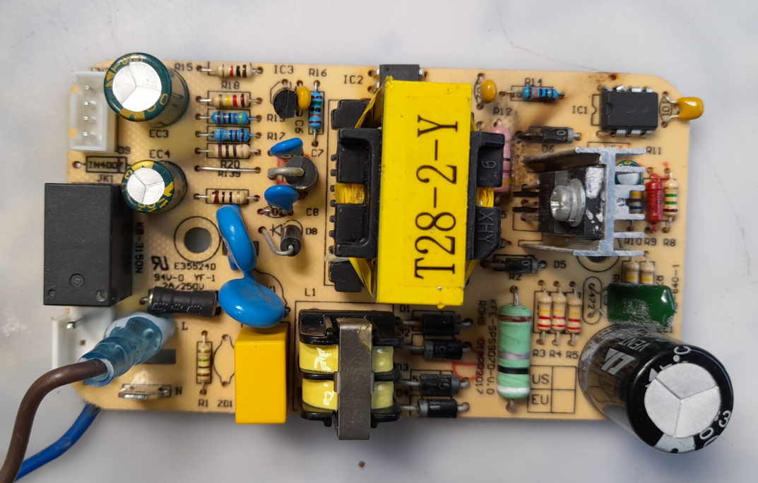 Всем здравствуйте! Сегодня небольшая статья с некоторыми непонятками, во всяком случае для меня. На ремонты был увлажнитель Elecrolux невключайка. С взорванным блоком питания. С типовой неисправностью первички. Всё про ремонт этого блока рассказывать не буду, уже описывал и не раз :)) Например здесь можно почитать или здесь . Фото блока ниже. Не обращайте внимания на резисторы, это всё делалось на скорую руку, дабы проверить работоспособность остальной электроники. Как обычно типовой набор бод замену. Транзистор 4n65, шим ob2263, три резистора 0,5 , 47 и 470 Ом и оптрон pc817. Честно говоря уже давненько не менял оптроны и вот опять :)) "Родной" оптрон превратился в два диода :) Типовая оптопара pc817 Что интересно. Пока эту оптопару не заменил, блок категорически отказывался работать. А дальше будет интересно. Эти оптопары, хоть они 817, но на приборе отображаются по разному. Я взял , вроде-бы заведомо исправную. Тестер отобразил её как тиристор. Запаял эту оптопару, блок запустил