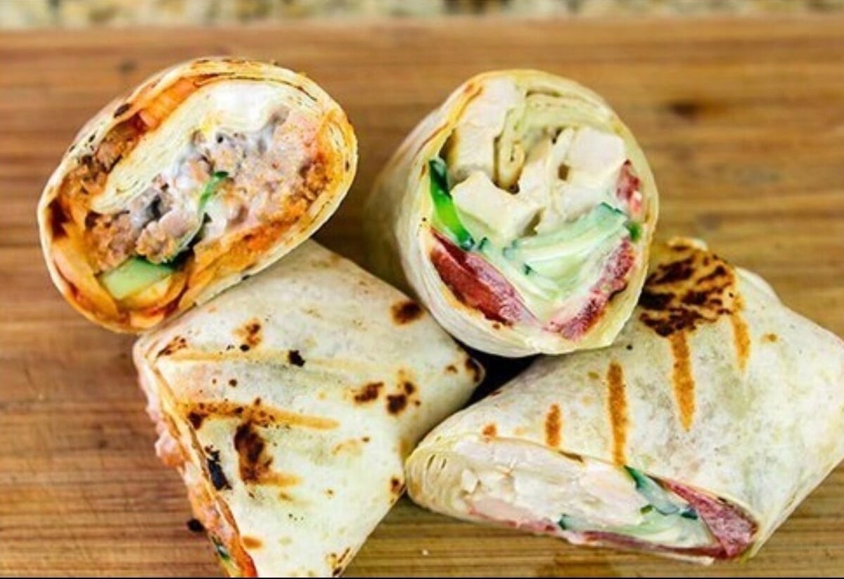 Здесь используем алиоли, помидоры/огурцы и куриную грудку. Свернутую шаурму можно слегка прижарить на сухой сковороде- так чтобы чуть подсушить лаваш.