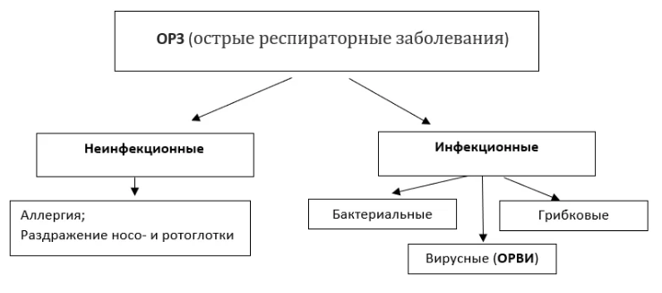 Как начинается сезон простуд, мы тут же спешим к врачу за больничным листом для себя или ребёнка. И, как правило, в строке диагноз написано "ОРЗ" или же "ОРВИ". Вроде симптомы плюс-минус одни и те же, а именуется заболевание по-разному, почему же? ОРЗ – это острое респираторное заболевание. Так называют все инфекционные и неинфекционные заболевания дыхательных путей. Представленная схема достаточно наглядно демонстрирует, что ОРВИ - это частный случай ОРЗ, то есть респираторное заболевание только вирусной природы. Лёгкую форму ОРВИ в быту мы называем простудой. Что используют для лечения ОРВИ? Противовирусные средства Тут необходимо знать, что среди данной группы лекарств, встречаются препараты, направленные на лечение только вируса гриппа А или B. Проблемой использования этих средств является ограничение в сроке начала их применения - не позднее двух суток с момента появления первых симптомов. Кроме того, зачастую нельзя определить, есть ли на самом деле у пациента вирус гриппа А или