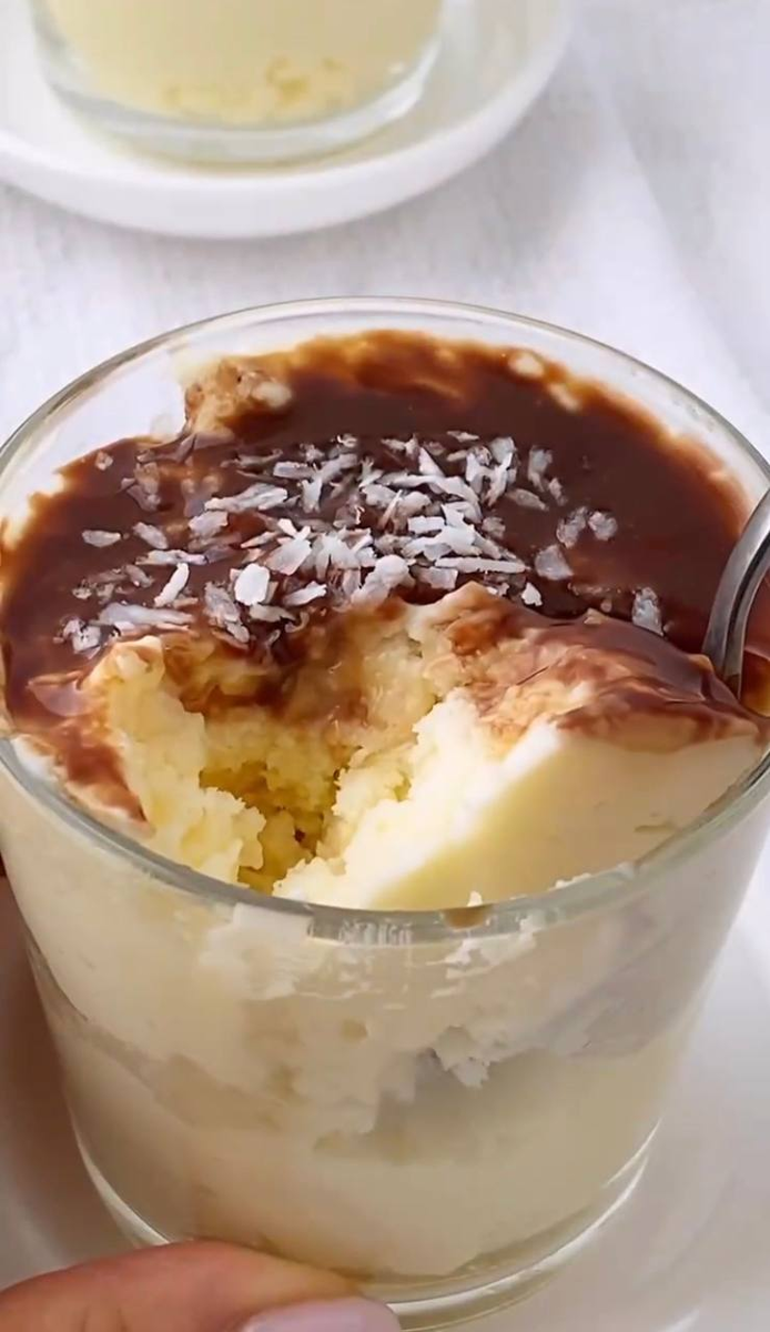 Бисквит: ⠀ Крем: ⠀ Глазурь: ⠀Приготовление: 1. Готовим бисквит. К яйцу добавить подсластитель взбить вилкой, добавить йогурт, муку и разрыхлитель. Тщательно перемешать. Отправить в СВЧ на 2- 3 минуты (не пересушите). Готовый бисквит остудить и измельчить в крупную крошку. 2. Для крема: в молоко добавить подсластитель, кокосовую стружку, яйцо, крахмал, тщательно перемешать. Нагревать импульсами, помешивая, до загустения. Крем остудить. 3. Собрать трайфлы: чередуя бисквит - крем. Сверху полить глазурью (молоко нагреть, растопить в нём шоколад). Наслаждаться☺️