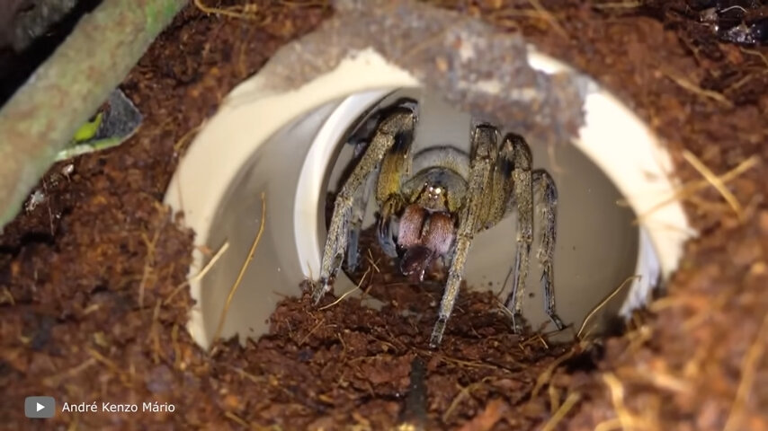 Бразильский странствующий паук - это один из самых смертоносных из ныне живущих пауков на планете. В отличии от своих собратьев, эти членистоногие не плетут паутину, а предпочитают бродить по джунглям в поисках добычи. Эти чрезвычайные агрессивные существа обитают в нескольких местах на планете, но особенно часто они встречаются в джунглях Бразилии. Люди живущие рядом с ареалом их обитания должны мириться с тем фактом, что эти существа могут подкрасться к ним в любой момент.