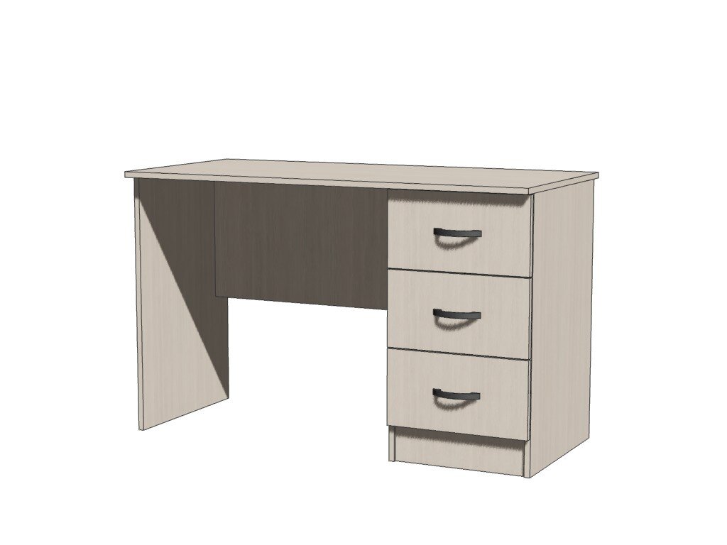 Стол письменный, размер столешницы 1200 х 560 мм. Высота стола 750 мм. Ширина бокового отдела 400 мм. Глубина ящиков 450 мм. Стол выполнен из материала ламинированного ДСП толщиной 16 мм. Данный рисунок показывает общее расположение деталей стола. На этом рисунке представлена схема сверления и присадки стоек стола бокового отдела стола. Отверстия выполнены сверлом, диаметр 7 мм. Следующий рисунок показывает присадку деталей бокового отдела стола. Отверстия в задней стенке, цоколе и стяжных планках выполнены сверлом диаметр 5 мм. Данный рисунок представляет присадку царги к левой стойки стола. Для сверления отверстий применяются сверла диаметром 5 и 7 мм. На этом этапе показываем присадку ящика стола. Для ящика применяются шариковые направляющие полного выдвижения. Дно ящика (ДВП) крепится гвоздями или шурупами 3,5 х 16 мм. Фасад ящика крепится к внутренней стенке ящика саморезами размером 3,5 х 30 мм. Зазор между фасадами 3 мм. На заключительном рисунке представлена схема присадки нап