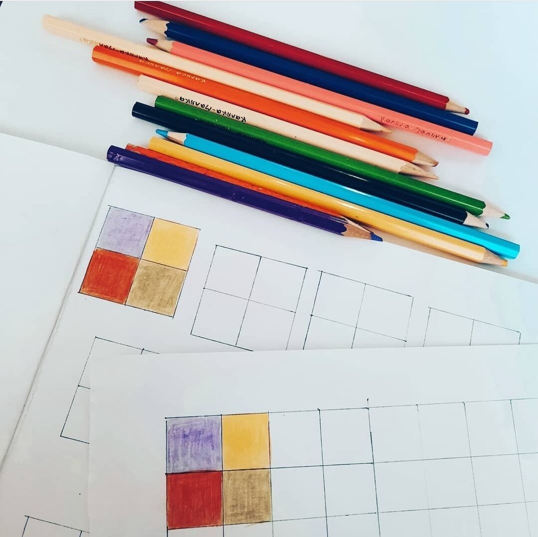 Многозадачность - наше всё. Ну не с пустыми же руками смотреть сериал, когда руки можно занять полезным делом. Особенно творческим людям. Как я начала делать игры. После ужина, я собрала посуду в посудомойку и стала смотреть фильм. Рядом лежала раскраска сына по номерам. Я взяла карандаши и создала яркую картину. Руки требовали продолжения и я решила раскрасить что-нибудь еще. Первое, что я нарисовала, был небольшой квадрат, в нём квадраты по меньше разных цветов. Таких квадратиков получилось много, Я посмотрела на них и мне пришла в голову идея... Я подумала, это же достаточно интересные квадраты и их можно искать по образцу. Что я сделала? Нарисовала в альбоме много квадратиков и разделила их на 4 части. Раскрасила все части разными цветами. Дальше я сделала точно такое же поле, но только картоне. И вырезала все квадраты. Получилось одно поле образец и множество идентичных квадратов. Ребёнок был в восторге. Столько маленьких ярких частей, от одной большой картины. Надо быо=ло найти