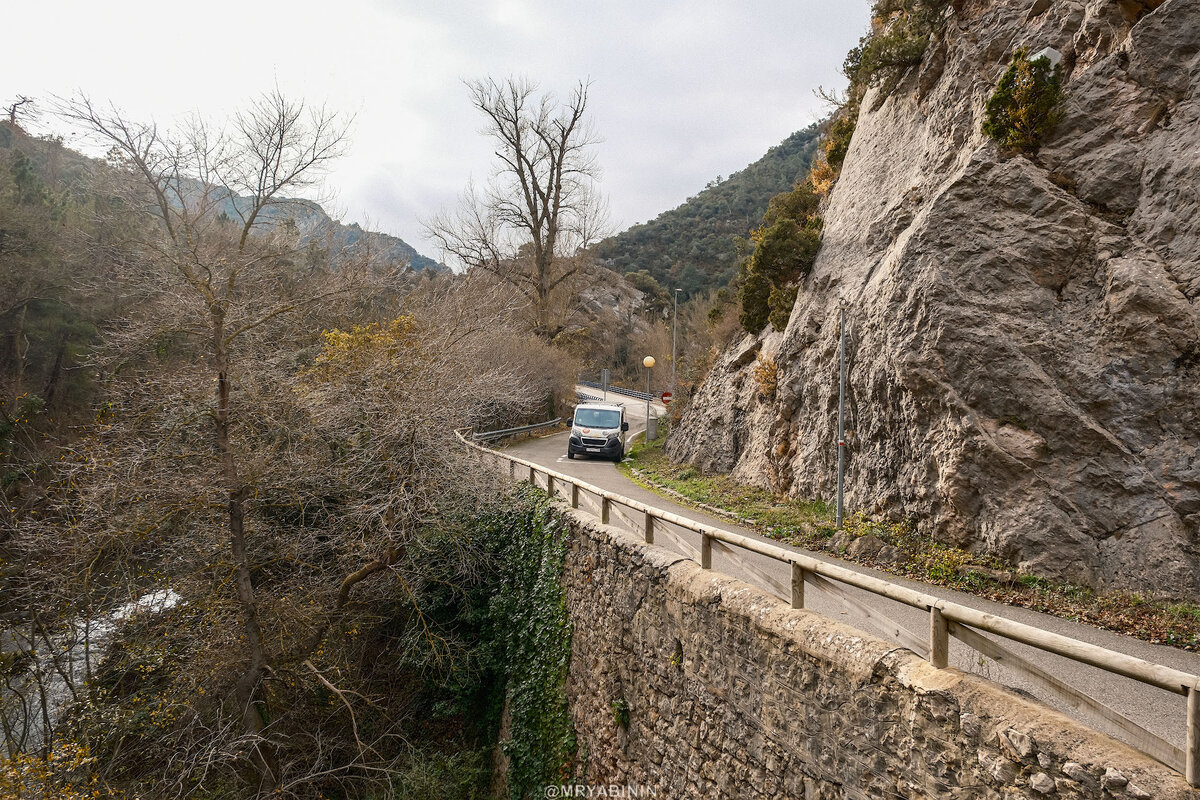И вот мы ступаем на ту самую старую дорогу "контрабандистов". Я ее так называю потому, что была она узкая, опасная и петляла среди ущелья, надежно прикрывая тех, кто по ней ходил и ездил. Такие дороги, как водится, всегда были дорогами доставки контрабандного вина или еще чего-то запрещенного в те или иные времена. Я бывал на таких дорогах в Италии, в Австрии (официально подтвержденных маршрутов контрабанды), а теперь на похожей в Испании, ставшей туристической достопримечательностью.