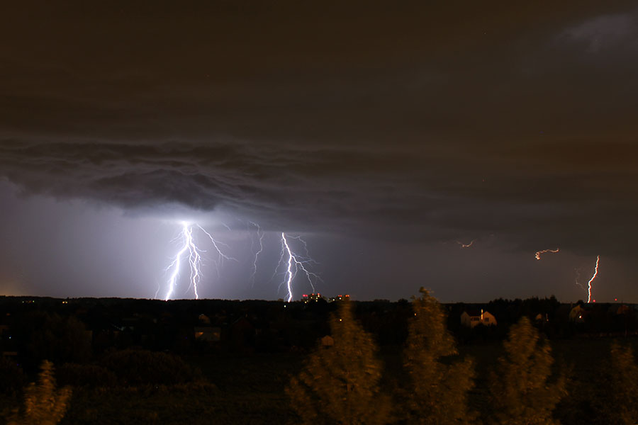 Пока ничего интересного в микроэлектронике не происходит (либо всё засекречено и наружу сливов нет), хочу поделиться с вами своими фотоработами. Не фотороботами, а фотоработами. Я немного увлекаюсь фотографией, на любительском уровне. Хожу по окрестностям дач, фоткаю своей зеркалкой разное... букашки, листочки, птички... в общем, милоту всякую ))) Ну вот, как-то нафоткал молний. Как-то вечером на наш посёлок налетела гроза... точнее, ещё не налетела, а появилась на горизонте. Ну и я, как это водится, схватил фотик и попёрся на самое высокое место — на эстакаду для перегона через шоссе сельскохозяйственной техники с поля на поле. Ну, чтобы меня шандарахнуло сделать оттуда красивые фотки молний. Листва на деревьях носит оранжеватый оттенок из-за того, что шоссе, через которое перекинута эстакада, освещено натриевыми лампами. Снимал я с неподвижного железобетонного борта эстакады с полуминутной выдержкой. Ставил фотик на борт, включал таймер на 10 секунд, и производил фотографии в сторон