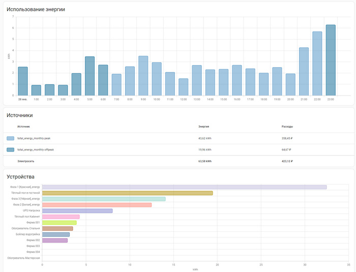 Делюсь опытом во сколько обходится отопление дома электричеством в Подмосковье. Итак, дом площадью 160м2, постоянно проживает 2 человека, из дома никуда не выходим. Только в магазин и на прогулки. Большую часть времени проводим на первом этаже. Гостиная и кабинет. Спальня только ночью. На первом этаже в гостиной и кабинете теплые полы (пленка). Температура поддерживается на уровне 23х градусов. Второй этаж электро конвекторы под окнами. Дополнительно имеется отдельностоящая мастерская, тоже из сип. Там поддерживается температура не ниже 5 градусов, чтобы всякие жидкости не замерзали. Вода тоже на электричестве, насос в колодце, плюс два электро бойлера 100 литров и 80. Ванная тоже теплый пол, там постоянно держится температура 25 градусов, приятно знаете ли сесть на теплый унитаз:) Ещё подогревается чердак, не даю ему замерзнуть ниже 5 градусов. Это дополнительный подогрев входящего через рекуператор воздуха. Компы всегда включены, рабочий комп, сервер естественно всегда работает и