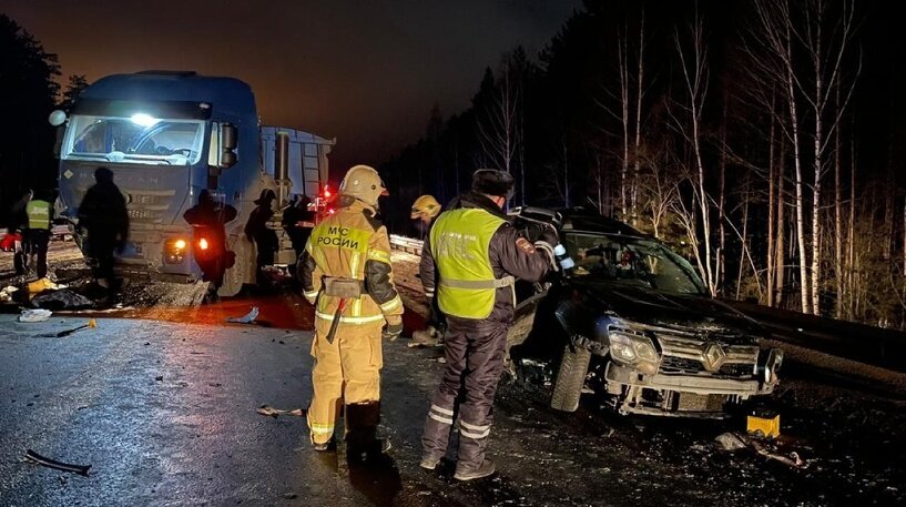 Смертельная авария произошла на 149-м километре трассы Екатеринбург — Серов. Водитель Renault Duster во время обгона врезался во встречный грузовой автомобиль Mercedes. От удара легковушку отбросило на отбойник, развернуло, и он столкнулся со Skoda Fabia и грузовиком Hunogam. Водитель (мужчина 53 лет) и 49-летняя пассажирка Renault погибли. Водитель и пассажир Skoda с травмами различной степени тяжести доставлены в больницу. «Известно, что погибшие проживали в городе Урай Ханты-Мансийского автономного округа. Пострадавшие в автомобиле Skoda — жители города Лысьва Пермского края. По факту происшествия органы внутренних дел проводят расследование», — сообщили в отделе пропаганды ГИБДД по Свердловской области. Движение транспорта на участке трассы, где произошло ДТП, частично открыли в 4 утра.