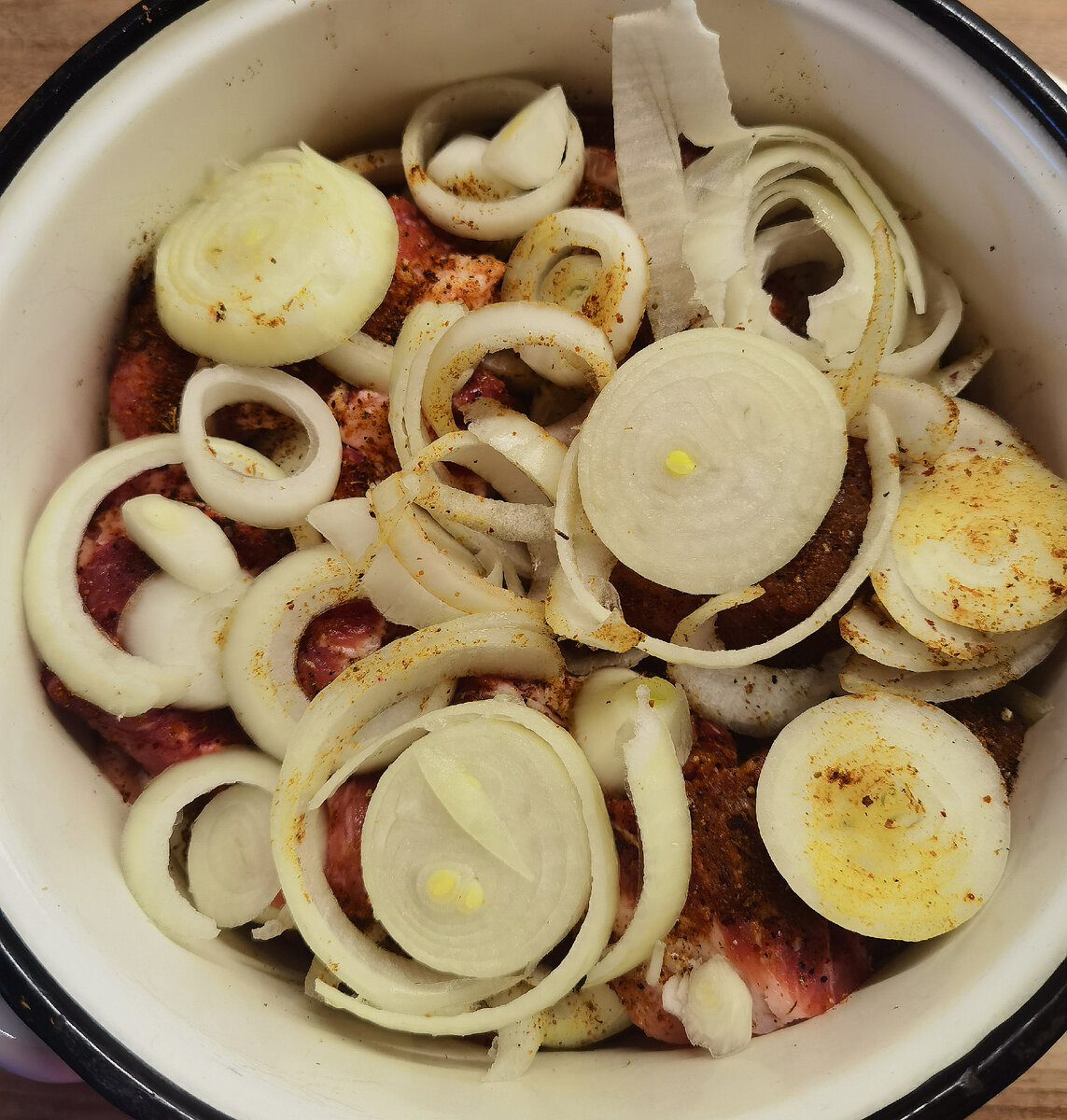Всем доброго времени суток! Всё, докатилась, была уверена, что вчера ночью статью выложила, а оказалось, что на кнопку нажать забыла... Исправляюсь... Может уже не сильно актуально, но пусть будет))) Сегодня снова день несоблюдения диеты! С родителями отмечаем День Рождения сына. Никакого подсчёта сегодня не будет, а только покажу, что готовила) Ну, мой торт вы уже видели))) Рецепт здесь⬇️ На основное блюдо захотелось шашлыка, обычного, свиного. Сто лет его уже не ели. Как-то на крылья перешли или рыбу. Купила шейку и карбонат, для любителей попостнее. Мариновать учил один дагестанец, меня и родителей. Так и делаем уже давно. Слоями мясо, специи, лук. Перемешивать каждый час, солить за 30 мин до жарки. Никакого уксуса, лимона, майонеза. Максимум чуть минеральной воды добавить, если лук не сочный. Замариновала овощи и грибы. Обычно баклажан, перец беру, можно кабачки, томаты по желанию. Маринад- оливковое масло, чеснок, соевый соус и немного бальзамического уксуса. И закуски на