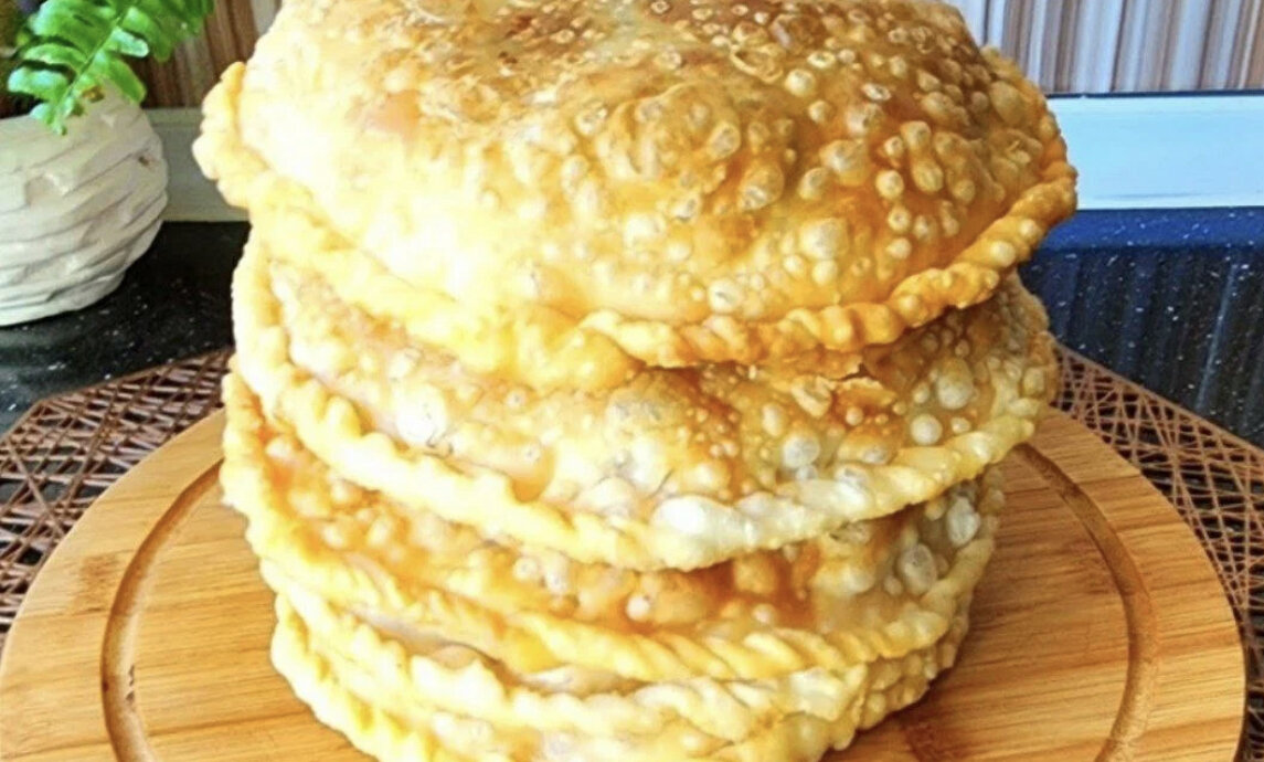 Ассаламу алейкум мои дорогие подписчики. У меня есть к дамам вопрос а ваш муж всеядный или капризный в еде? А вот мой муж очень капризный его не легко угодить, обязательно к первому блюду просит что то вкусное. И вот в один день приготовила чебуреки в необычном виде. С тих пор готовлю эти жареные круглые сочные чебуреки и всем домашним нравится.
