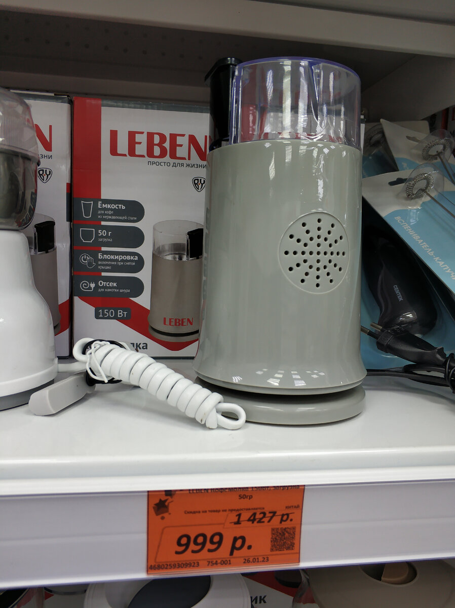 Приветствую, уважаемые! В магазине Галамарт начались тоже поступления товаров. Тоже буду показывать по мере появления новинок. Но сегодня хочется начать именно с кофемолки, на которую я когда-то делала обзор и сама покупала тоже по акции здесь же в Галамарте. Это кофемолка Лебен. До сих пор служит верой и правдой. И сейчас она со скидкой стоит всего 999 руб, дешевле я не видела. Рекомендую. На счет кофемолки добавлю, использовать его для того, чтоб перемолоть на много порций нельзя! Этот аппарат не предназначен для промышленных масштабов. После одного применения (получается на 2 чашки) нужно дать остать мотору, отключить минимум на пол часика или час. Если эксплуатировать с умом, то прослужит долго. Если нет - можно и за 1 день посадить и сломать. Мотор не меняют, придется покупать новый. А вот те самые панели на кухонную стену, которые вам понравились. Там в пост не влез белый цвет, вот с него и покажу тут подробнее. Ценник под ними. Текстура красивая, очень понравилась мне. Самоклей