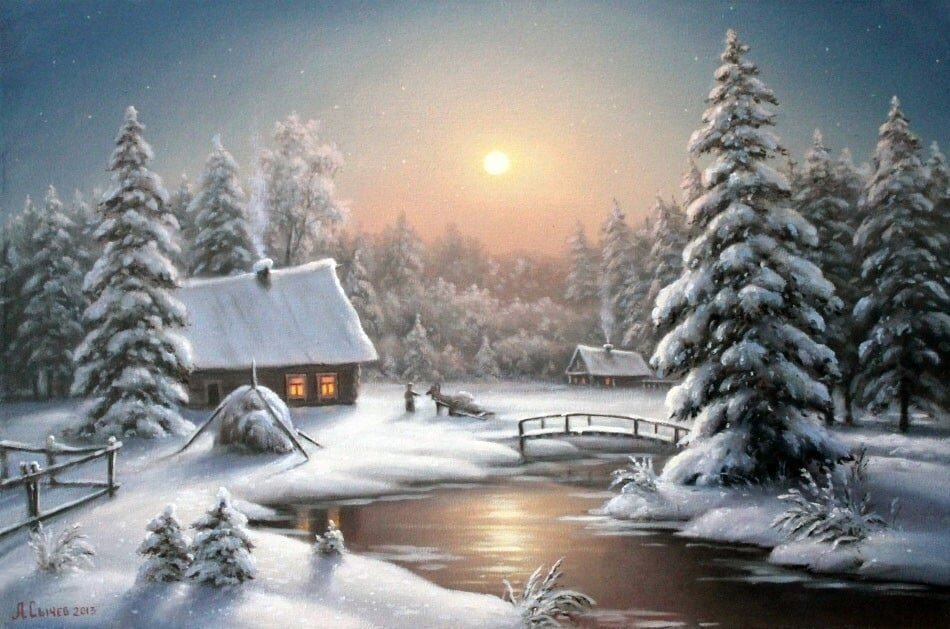 Скрип шагов вдоль улиц белых, Огоньки вдали; На стенах оледенелых Блещут хрустали. От ресниц нависнул в очи Серебристый пух, Тишина холодной ночи Занимает дух. Ветер спит, и все немеет, Только бы уснуть; Ясный воздух сам робеет На мороз дохнуть. (А. Фет)