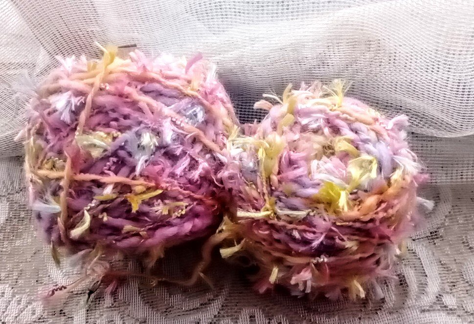Сегодня я хочу поделиться с вами результатом моего нового навыка- Прядения! Кто бы мог подумать в прошлом году, что спустя год я буду прясть! Я, которая набирала полки готовой пряжей! Мужу никогда этого не понять. Ладно сначала училась вязать, распускала и снова вязала, потом стала запасать пряжу. Логично, ведь из неё вяжут,но когда есть готовая, зачем садиться и прясть? Пряжи навалом, всегда можно купить новое, но сидеть и тратить свое время на то в чем нет острой необходимости? К такому моего мужа его логическое мышление не готовило. Но тем не менее, я загорелась этой идеей не на шутку. И пару раз потерпев неудачу, у меня стало получаться. На прошлой неделе я собрала всю свою спряденную пряжу, в пакет, решила взвесить. Сколько по весу напряла. Увы но чуть меньше кг. Виды разные ,пробежимся кратко. Подробнее я рассказываю о пряже в группе ВК . 1 . Секционный пухляш. Пухлая пряжа из секционной шерсти, обмотаная ниткой хлопка. Фактурной обмоткой. Таких получилось два мотка. Первые