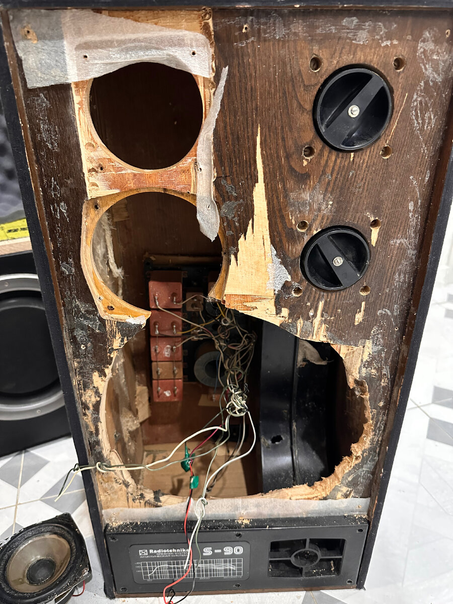 Часть 3. В предыдущей статье я рассказывал с чем пришлось столкнуться и какие сюрпризы ожидали после вскрытия колонки Radiotehnika S90. После детального осмотра фильтра по схеме выяснилось, что схема подключения была нарушена, 2 конденсатора осыпались а в одном даже была дырка от самореза. Временно купил дешевые конденсаторы на замену старым и резисторы на делитель так как мне с нетерпением хотелось восстановить схему. Далее приступил к изготовлению нового корпуса, произвел замеры и добавил несколько сантиметров в высоту тем самым увеличил внутренний обьем. Стыки проклеил, дополнительно скрепил металлическими уголками и герметиком прошел все швы. Обклеил изнутри автомобильной шумкой. Вообщем с корпусом изрядно пришлось по ковыряться. Заменил всю проводку на медную, 2,5 мм на басовик, остальное 1,5 мм. Заменил пару кондеров, переделал схему к заводскому исполнению, установил фильтр рядом с динамиком. И вот пришло время все это собрать воедино. Вот такая красота получилась!!! Но са