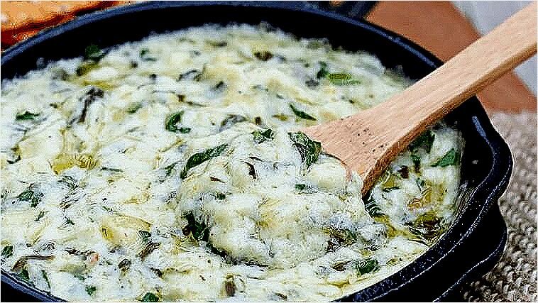 Слейте воду с сердечек артишоков и добавьте их в миску со шпинатом вместе со сметаной, йогуртом, чесноком, солью, перцем, луковым порошком и лимонным соком.