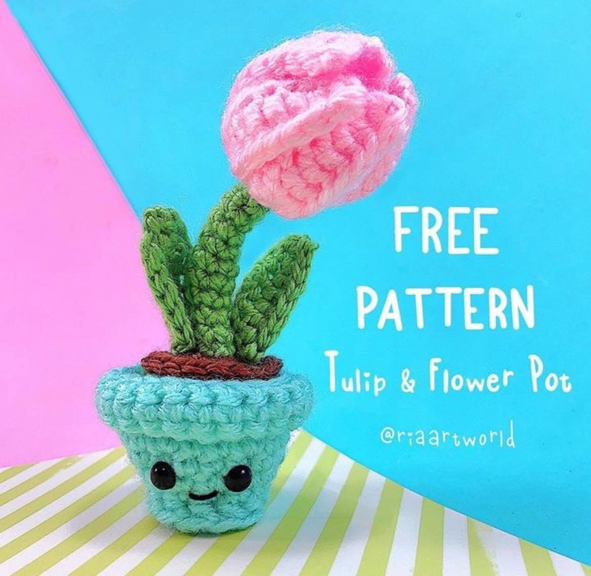 Лепестки тюльпана 1р. 6сбн а КА 2р. 10вп во 2-ю петлю от крючка сбн, псн, 4ссн, псн, сбн, вп, повор 3р. сбн, псн, 4ссн, псн, сбн повор 4р. Вниз сс, лепесток соединяем с кольцом, повторяем еще 5 раз Нить обрезать, оставить длинный хвостик Горшок 1р. 6сбн в КА 2р. 6пр - 12 3р. зп 12сбн 4р. (сбн, пр)*6 - 18 5р. 18сбн 6р. (2сбн, пр)*6 - 24 7-8р. 24сбн 9р. лп 24сбн 10р. 24сбн Выверните 10 ряд на ружу и закрепите его между 8 и 9 рядом Глазки вставьте между 5 и 6 рядом расстояние 2сбн. Вышейте рот. Земля в горшке 1р. 6сбн в КА 2р. 6пр - 12 3р. (сбн, пр)*6 - 18 4р. (2сбн, пр)*6 - 24 Нить обрезать, оставить длинный конец. Горшок набить. Пришиваем землю между 10 и 9 рядом. Листья 2шт 1р. 10вп, во 2-ю петлю от крючка сбн, псн, 4ссн, псн, сбн, вп по другой стороне цепочки сбн, псн, 4ссн, псн, сбн Закрепить, нить обрезать Стебель 1р. 6сбн в КА 2-10р. 6сбн Обрезать нить, оставить длинный хвост К стеблю пришить лепестки тюльпана а стебель пришить к горшку с землей, и рядим листья.