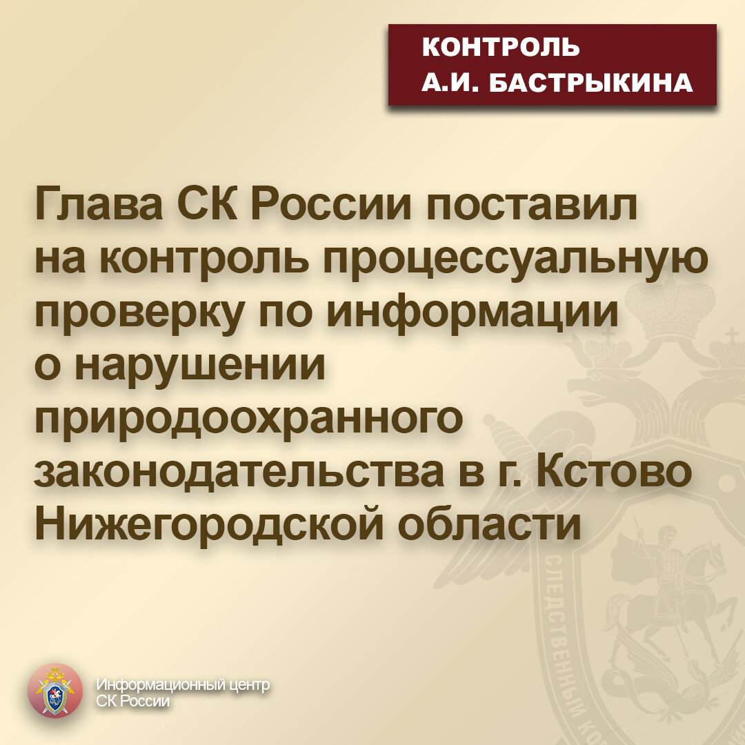 Глава СК России поставил на контроль процессуальную проверку по информации о нарушении природоохранного законодательства в г. Кстово Нижегородской области