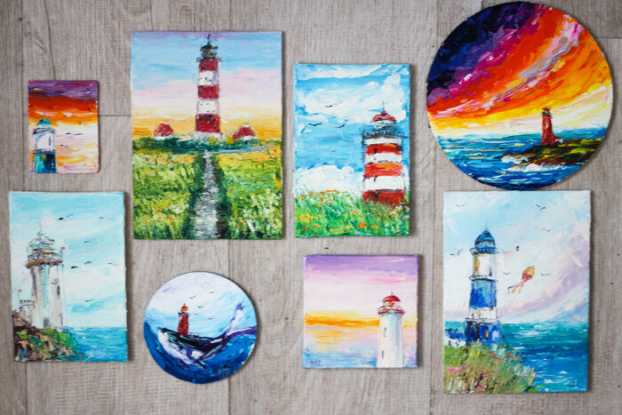 Всем прекрасного воскресенья!) В прошлый раз я тут уже показывала свои картины, но постеснялась написать цены. Поэтому в этот пост с ценами) слева на права. Самая маленький маяк, размер 6х8, магнит - 500р Нижний слева, размер 10х15 - 1200р Маяк и дорога, размер 13х18 - 1450р Круглый с китом д10см - 800р Маяк летом 10х15 - 1200р Квадратный маяк 10х10 - 1100р Круглый холст д16см - 1800р Маяк с воздушным шаром 13х18 - 1450р. Если интересно мое творчество, то можете найти меня в инстаграме как mallueva_art. Читайте также.