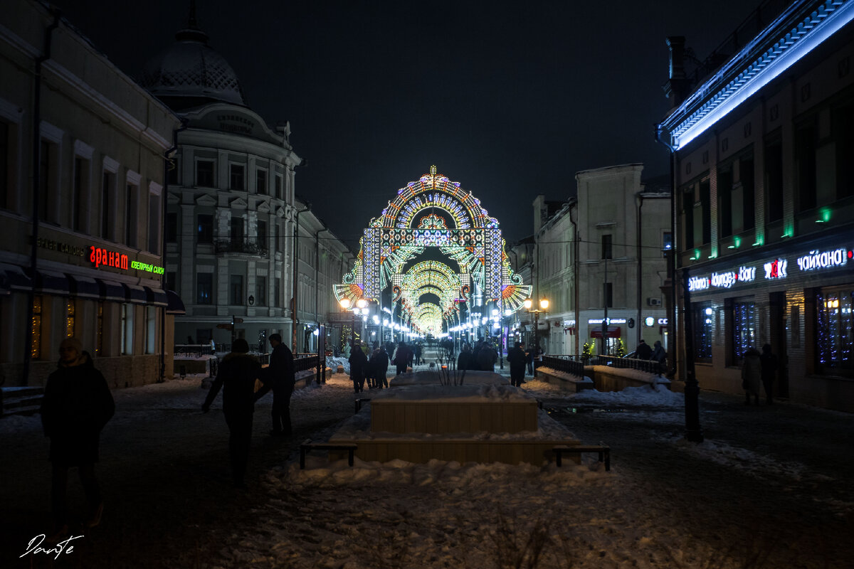 Доброго времени суток, уважаемые мальчики и девочки, мужчины и женщины, сэры и сэрихи, приветствую вас на своем канале.👋 Заранее спасибо всем, кто читает и комментирует мои записи. Я вам очень признателен! Отведавши дивных напитков в "TOP HOP": Мы отправились любоваться вечерним кремлём. Напомню, на дворе 31 декабря 2022 года, времени ориентировочно 21 час. До наступления нового года остается 3 часа. Улица Баумана вся светится. Вид в противоположную от кремля сторону. Красота да и только. До кремля рукой подать. Как я уже говорил и не устану повторять - "ночная Казань и дневная, это два разных города". Собственно пришли мы сюда, чтобы у меня была возможность вновь поснимать мечеть Кул Шариф, только уже на новый аппарат. Это великолепно! Заметил одну очень интересную вещь, ночью, в гостинице, подходя к окну, складывается ощущение будто наступает рассвет. На самом деле до рассвета еще далеко, однако Казань, благодаря огромному количеству подсветки, иллюминации и прожекторов, светится и