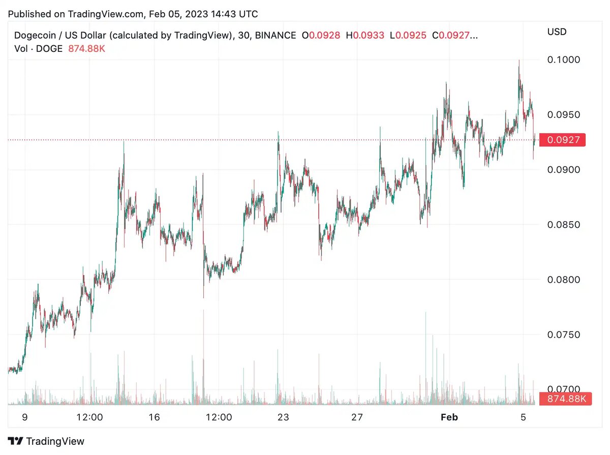 В прошлом месяце лучшие мем-коины по рыночной капитализации выросли в цене по отношению к доллару США. Согласно статистике, зарегистрированной 9 января 2023 года на сайте archive.org, 27 дней назад экономика мем-коинов оценивалась в $16,8 миллиарда. По состоянию на 5 февраля 2023 года этот рынок оценивается в $22,6 миллиарда, что на 5,4% больше, чем день ранее. За последние 27 дней токены-мемы прибавили в стоимости $5,8 миллиарда и выросли более чем на 34% по отношению к доллару США. Наибольший рост на этой неделе среди мем-коинов включает Pomeranian ETH (POM), выросший на 117,2%, токен Baby Doge (BABYDOGE), рост на 113,9%, и Polydoge (POLYDOGE), рост на 86,7%. Две ведущие мемные монеты, с точки зрения рыночной оценки, Dogecoin (DOGE) и Shiba Inu (SHIB), выросли на 5,3% до 22,1%, причем SHIB продемонстрировал больший прирост. Dogecoin (DOGE) и Shiba Inu (SHIB) составляют $21,32 млрд или 94,34%, от общей суммы в $22,6 млрд в экономике мемных монет. Dogecoin вырос на 29,4% в этом месяце,