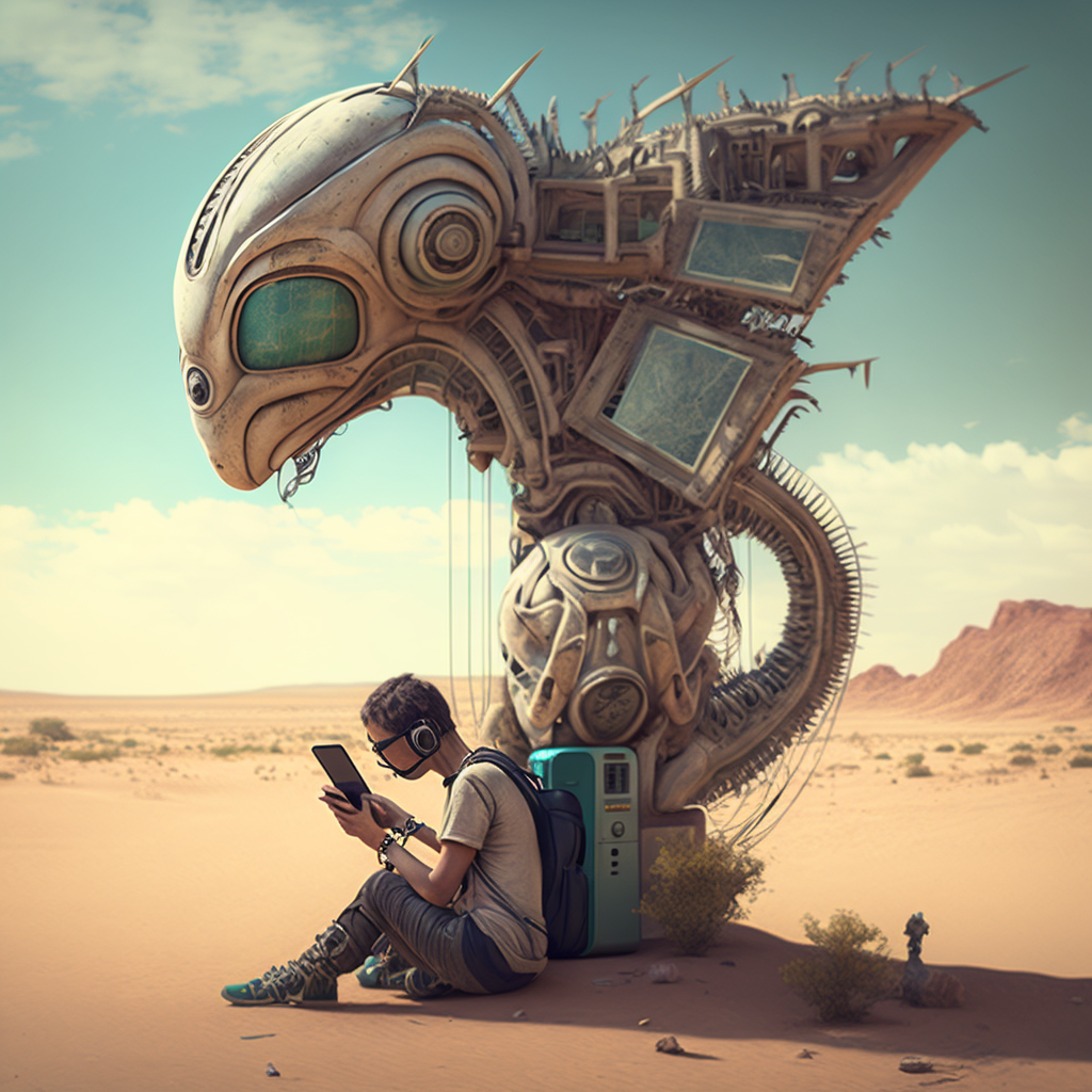Давным-давно, в не столь отдаленном будущем, был город, где технологии продвинулись настолько, что стали неотъемлемой частью жизни людей. Люди использовали продвинутый искусственный интеллект, чтобы облегчить свою жизнь, роботы заботились о домашних делах, а летающие машины заполнили небо. Однако, при всем удобстве технологий, это также вызвало некоторые проблемы. Люди стали настолько зависимы от технологий, что начали терять связь с окружающим миром. Они проводили большую часть своего времени, подключенные к виртуальной реальности и общаясь через экраны, а не лицом к лицу. Однажды молодая девушка по имени Ава наткнулась в библиотеке на старую книгу. Книга была наполнена историями о приключениях и открытиях, и она была очарована. Она поняла, что упускала красоту и волнение мира, потому что была так поглощена технологиями. Ава приняла решение отключиться от виртуального мира и исследовать реальный. Она отправилась в путешествие, знакомясь с новыми людьми, открывая новые места и узнавая