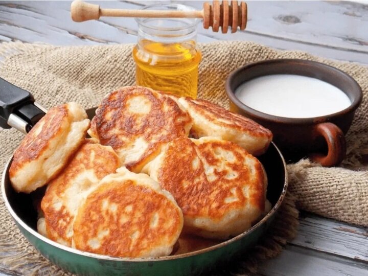 Они получаются пышными, воздушными и нежными. Ингредиенты: В сотейнике смешать молоко с дрожжами и поставить на слабый огонь, подогреть до 40 градусов (приятное тепло). Важно не перегреть, чтобы не погибли дрожжи. Просеять муку, добавить 1,5 куриного яйца, сахар, посолить, смешать с теплым молоком вместе с дрожжами. Влить растительное масло, еще раз размешать. Тесто должно постоять минут 15-20 в тепле. За это время оно поднимется и станет пышным. Разогреть сковороду с маслом и пожарить оладьи с двух сторон. Готово! Приятного аппетита! Не забываем подписываться. Заранее спасибо!