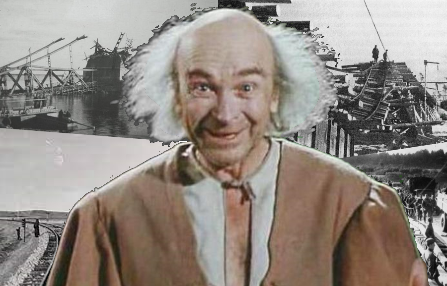 Что касается Катина-Ярцева, то служил он во входившем в 14-ю железнодорожную бригаду 63-м отдельном мостовом железнодорожном батальоне. Без мостов любая железная дорога встанет, и в условиях военного времени приходилось эти вопросы решать очень быстро. Мы как-то привыкли, что переправами войск занимаются понтонёры, но железнодорожный состав на понтонах не переправить. Конечно, возведение полноценного железнодорожного моста через крупную реку, пусть не Днепр, а хотя бы Березина — дело многих месяцев, которых на войне нет. Но как-то справлялись, возводя что-то временное, а то и просто дамбы насыпали.