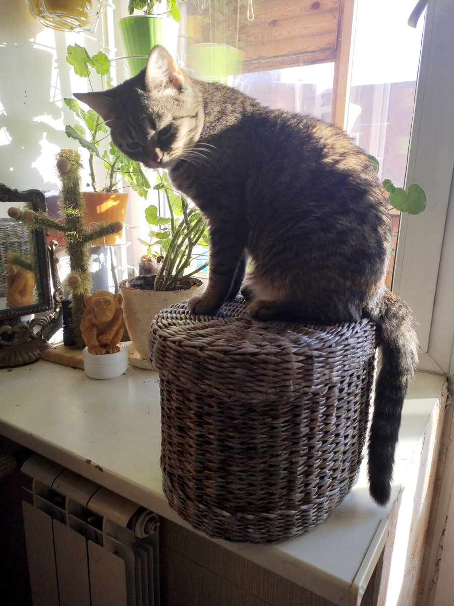 Поставила будильник, сижу за столом и жду, пока рыба засолится. Ну не так чтобы жду - всё-таки четыре часа - но сижу на кухне. Чуфа крутилась-крутилась рядом, потом вот так села и стала огорчённо глядеть в пол... Я на неё глянула и прямо услышала мысли: — Вот, Таничка, про фсякое пишешь, а про нас с Фыней слов жалко! Одни короткие ролики снимаешь, а чтобы про котикоф рассказать фкусно - давно не было!!! Эх ты!.. И, главное, она не одна меня стыдит! Обезьяна ей явно поддакивает, присмотритесь! :):):) Ой, и правда! Что это я?! Срочно исправляюсь! Тем более что фотографий есть у меня! :) Начну с конца декабря, пожалуй. :) По традиции, я ставлю ёлку 30-го или 31-го числа. Если раньше, то она и примелькаться может. К этому Новому году мы все валились с ног от усталости. Ёлка стоит вот на этой тумбочке, в прошлом году мы её привязали, но не помогло: котята повалили всё сооружение. Тут я решила, что они уже сознательные граждане, украшения на ёлку я всё же повешу. Но всё-таки и привяжу. Сил х