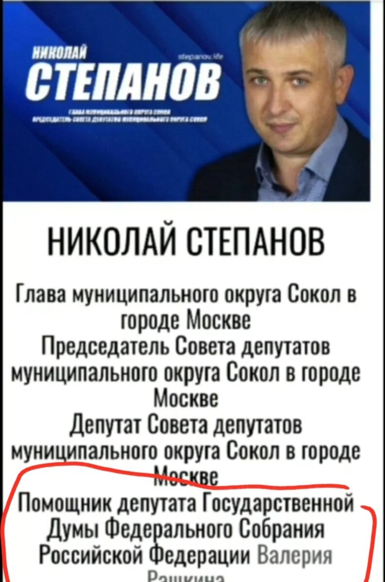 глава Совета депутатов района Сокол с 2017 года становится любимчиком КПРФ и постоянно выдвигается персеком МосКПРФ Валерий Рашкин , став его помощником Госдуме.