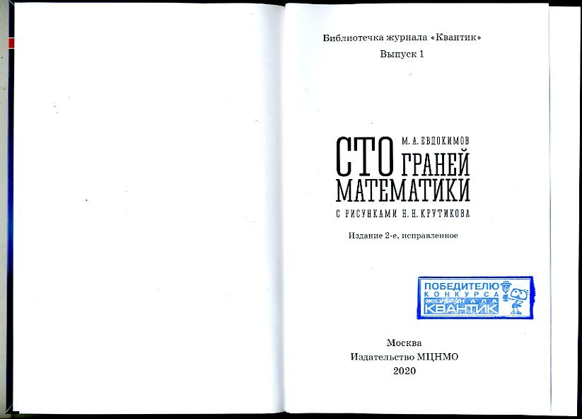 Жюри. ------------------------------------------------------------------------------- Ребенок второй раз получает бандероль от Квантика: книжки, календарь + какие-нибудь интересные математические штучки, ну и сертификаты. Ему в этот раз очень понравилось вот это: Она сдвигается и раздвигается. С одной стороны такой геометрический вид, с другой алгебраический. Но еще больше ему, да и мне понравился ресурс с Математическими этюдами. Ссылку он увидел на обратной стороне этой "штучки". Вчера весь вечер там пробыл и с утра опять туда. Залипательная ресурс. (и я там был) Все это присылается совершенно бесплатно (он победитель прошлого учебного года). Из книг, вот эту сразу взял с собой к бабушке (Лабиринт пишет, что я ее уже заказывала... надо поискать. Разобралась, это другой выпуск с другой иллюстрацией на обложке.): 5го чис