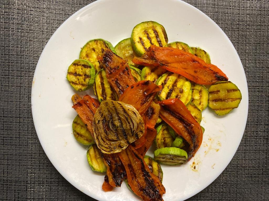 Овощи гриль это то блюдо, без которого у нас не обходиться ни один поход в ресторан. Они являются идеальным гарниром к мясным и рыбным блюдам, а также хороши и сами по себе. Их совсем не сложно приготовить в домашних условия, особенно если есть домашний гриль. Делимся нашим рецептом. Понадобиться: Готовим: 1. Кабачки промываем и нарезаем кружочками. Перекладываем в миску. 2. Болгарский перец промываем, очищаем от семян и нарезаем кусочками. Перекладываем к кабачкам. 3. Репчатый лук очищаем и нарезаем кольцами. Отправляем в общую миску. 4. Добавляем соевый соус, соль и специи. Хорошенько все перемешиваем и даем немного настояться и пропитаться. 5. Электрический гриль или сковороду-гриль смазываем небольшим количеством растительного масла и выкладываем овощи. Жарим с двух сторон до хрустящей корочки. 6. Подаем к столу в качестве гарнира или как самостоятельное блюдо дополнив любимым соусом. Приятного аппетита! На нашем канале ВКУСНЫЕ ЗАПИСКИ есть много других интересных и простых рецепто