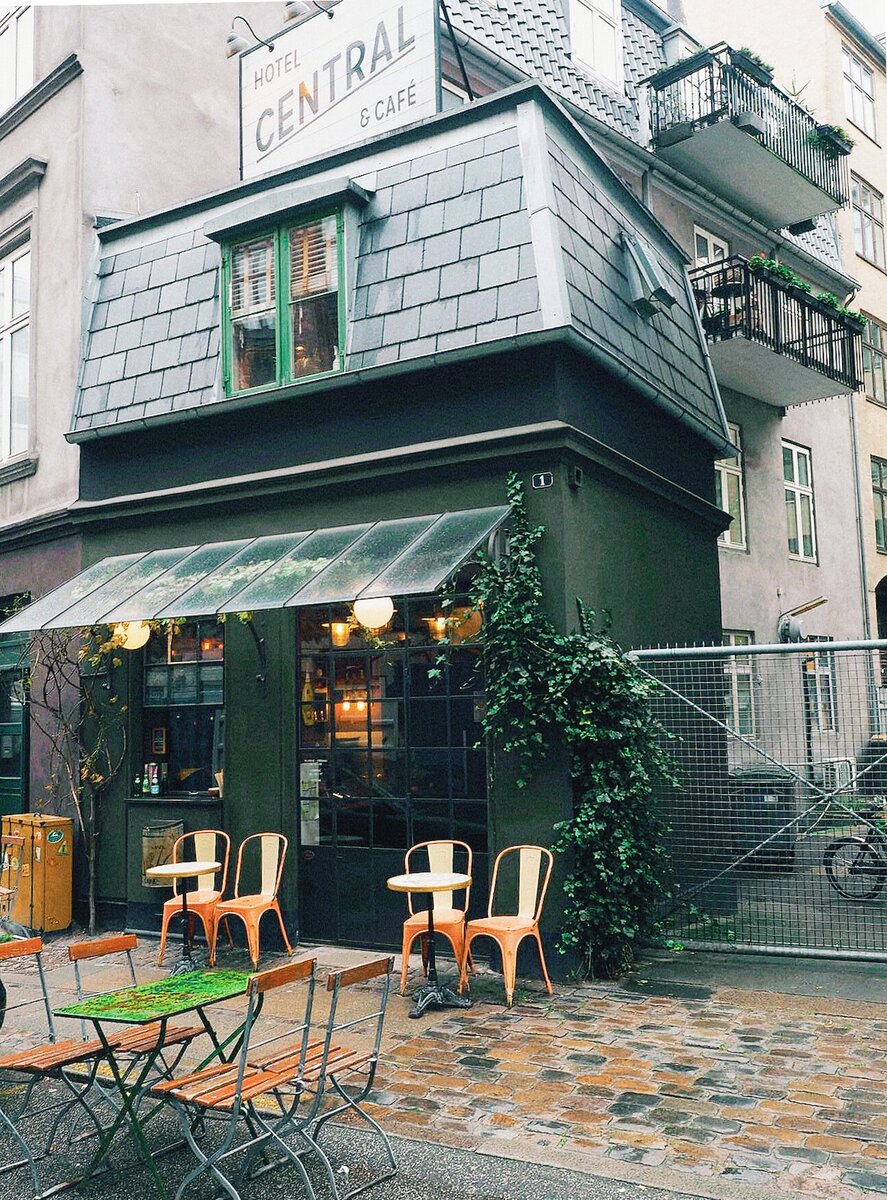 Oтель Central & cafe расположенный на улице Tullinsgade 1 в туристическом центре города Копенгагена, Дания. В отеле всего один номер, площадью 12 кв. метров. Единственный номер находится на втором этаже двухэтажного здания. На первом этаже расположилось уютное кафе. Проживание довольно дорогое 2500 датских крон, что в переводе на рубли будет 25000. В номере есть всё необходимое, двуспальная кровать, плазменный телевизор, холодильник, столик и полноценная душевая. В 1905 году в этом здание была обувная мастерская и оно имело один этаж. В 1920 году хозяин мастерской достроил второй этаж для проживания. В 80х годах, тут было кафе и ювелирная мастерская. И уже после реставрации здания в 2010 году открылось кафе, а через три года на втором этаже открылся отель. Нынешний владельцем отеля известный в Дании постановщик шоу Лейф Сингтвед.