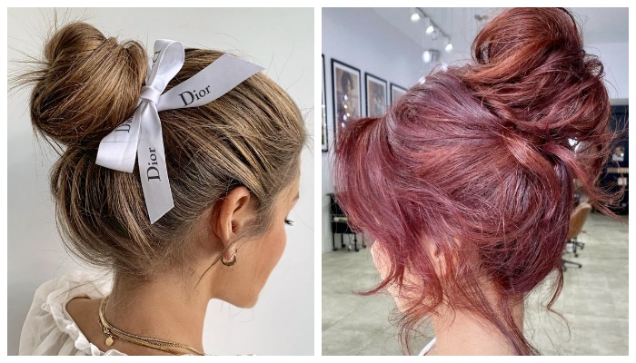 Все вы наверняка знаете старую, добрую прическу «дульку», которая, как это ни странно, получается абсолютно у всех с первого раза. На этот раз стилисты-парикмахеры поделятся с нами практичными и проверенными идеями причесок, которые многие смогут повторить. Вот вам первый наглядный пример, как из обычной «дульки» можно сделать эффектную вечернюю прическу за считанные минуты. Этот вариант прически примечателен тем, что в ней плавно переплетаются несколько прядей между собой, визуально это действительно напоминает прическу «дулька», и все они фиксируются невидимками или шпильками. Лохматые, слегка взъерошенные прически все также на пике популярности. На этот раз стилисты-парикмахеры представляют нашему вниманию усовершенствованную прическу «дулька», которая отлично впишется в праздничные образы. В данном случае несколько передних прядей остаются нетронутыми, они красиво обрамляют овал лица. Сзади волосы можно начать формировать в низкий хвост, но при этом их не надо доставать до конца