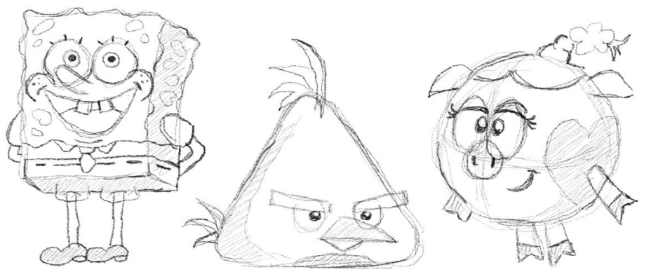 Как я уже писал в книге «Как создать мультфильм, если руки-крюки», большинство популярных персонажей состоит из простых форм. Прямоугольников, треугольников и кругов. Так художникам и аниматорам проще их повторять и анимировать. Чуть более сложные персонажи, сочетают в себе несколько простых форм. Таких персонажей анимировать сложнее, но в любом случае вы узнаете их даже по силуэту. Спорим, вы назовёте все пять: "Простые формы помогают визуализировать голову и выражения лица с абсолютно разных углов." -Эрик Голдберг Да и не только голову. Один раз собрав персонажа из простых форм, вы сможете повторять его в любом ракурсе и положении. А соблюдать пропорции поможет заранее заготовленный шаблон. Размеры в таком шаблоне обычно измеряются «головами» персонажа. Если персонажей несколько - можно нарисовать их заранее на одном холсте. Прекрасным экземпляром шаблонизирования является книга «The Simpson’s Handbook». А подробнее об анимации персонажей можно узнать из книги Эрика Голдберга «Курс п