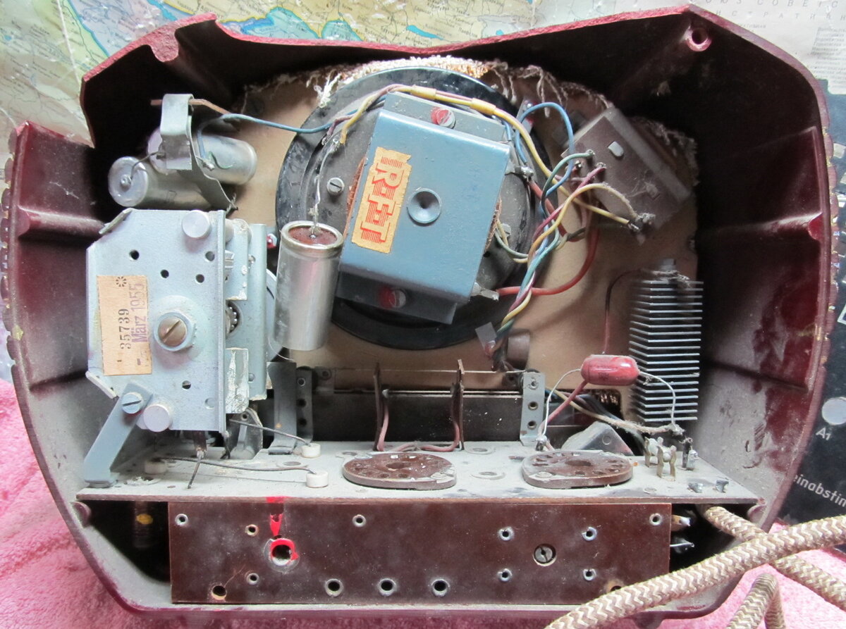 Популярный немецкий приемник фирмы Stern Radio Berlin, Михаил приобрел на немецком е-бее. Этот радиоприемник выпускали в 1954-55 годах и модель была очень популярна у населения. К сожалению, сохранилось их очень мало. У купленного приемника корпус в таком состоянии: