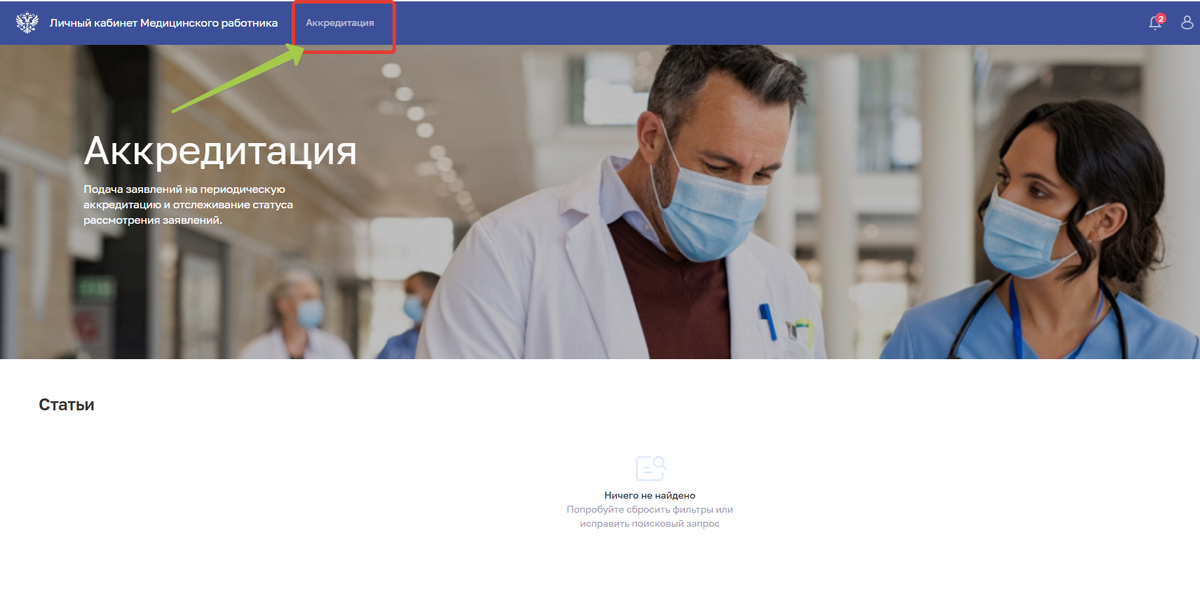 Если все в порядке, и в свой кабинет вы вошли, войдите в раздел аккредитация.