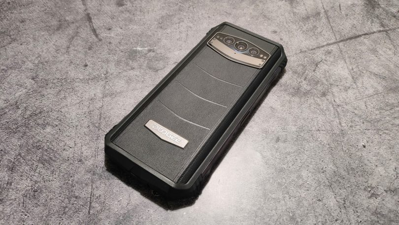 DOOGEE V30 – это крупное устройство с форм-фактором моноблока и достаточно сложной конструкцией. Тыльная панель у него изготовлена из эко-кожи. Есть два варианта исполнения – классический черный (как у меня) или более яркая версия с оранжевой спинкой.