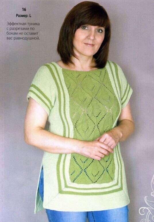 Легкая туника спицами для пышных дам. Эта очаровательная туника изящно подчеркивает женственность. Дизайн: Любовь Галдина