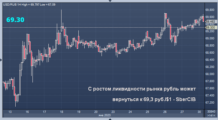 С ростом ликвидности рынка рубль может вернуться к 69,3 руб./$1 - SberCIB