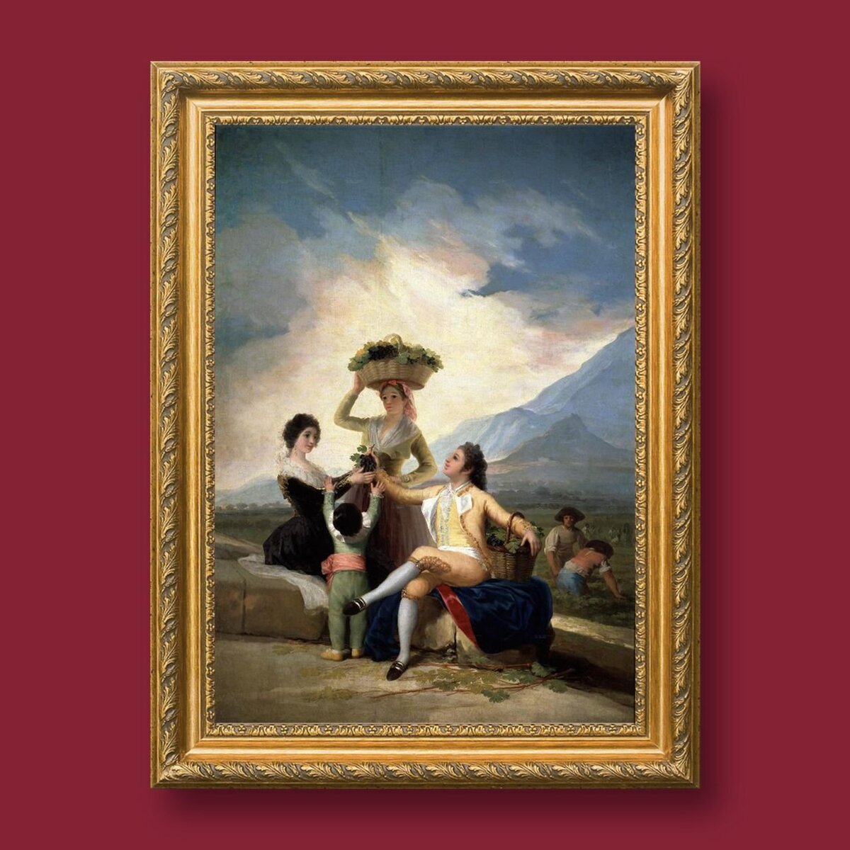Он любил жизнь и сам был словно сгусток жизненной энергии. Свое вдохновение черпал не только у женщин, но и на виноградниках. «Сбор урожая. Осень» была написана художником в память о детстве, проведенном в Сарагосе, известной своими виноградниками и вином. Картина исполнена в необычайно нежных, пастельных тонах, линии плавны, а крупные мазки будто перетекают один в другой. Люди предстают перед нами в праздничной одежде и обуви светлых как напоминание о том, что сбор винограда — это не только тяжелый труд, но и праздник для всех, кто делает вино, момент, когда рождается новый урожай и новое вино!»