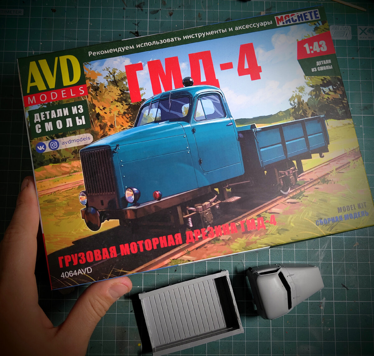 В прошлом году фирма AVD Models продолжила выпуск моделей из серии узкоколейной железнодорожной техники. Ко мне в руки попала коробочка с грузовой дрезиной ГМД-4. Набор выполнен из смолы, а часть деталей сделана из ABS пластика, остекление - прозрачный пластик. До выхода этой модели тема узкоколеек мне казалась не интересной. Но вот такой грузовичок на рельсах, со знакомой кабиной от Газ-51, очень захотелось собрать себе в коллекцию. В коробке нас ждёт пара литников с пластиковыми деталями, остальное уже из смолы. Литьё отличное, практически без облоя. Такой набор будет отличным вариантом для моделиста, который ещё не знаком со сборными моделями из смолы. Ну а я решил немного разнообразить себе сборку. Ведь в процессе поиска прототипа наткнулся на фотографии пожарной дрезины ПМД-3 😄 Такой аппарат выпускался на Демиховском машиностроительном заводе на базе дрезины ГМД-4. Необходимые для конверсии детали как всегда буду печатать на фотополимерном 3d-принтере. В сети нашелся любительск
