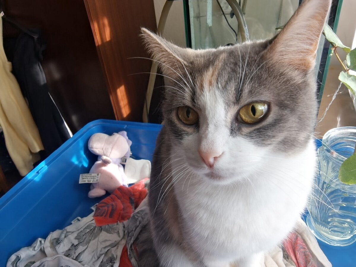 Ты любил сидеть в тепле. Летом, осенью и весной ты забиралась на подоконник в комнате сына. на южной стороне, ложилась и снизу тебя грела батарея, сбоку черепаший аквариум, с другого бока грело солнце. Зимой же ты спала под стульчиком около батарее. куда я стелила тебе шарфик.