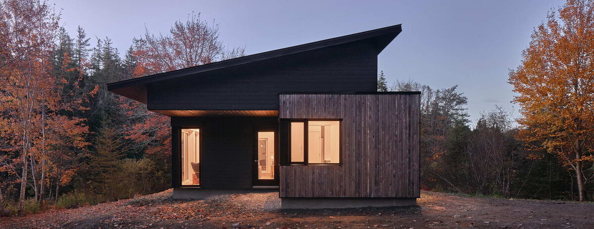 Эта частная резиденция, спроектированная и построенная студией Питера Брейтуэйта, расположена в небольшом прибрежном поселке Сибрайт, Новая Шотландия. Из окон открывается вид на живописное озеро и журчащий ручей. Панорамная гостиная обеспечивает уникальный вид окружающей природы. Форма дома подчёркивает зоны конфиденциальности за счёт использования грубо распиленного болиголова местного производства. Сводчатая гостиная и кухня располагаются между двумя вертикальными спальнями. Горизонтальная и вертикальная облицовка артикулирует эту взаимосвязь на внешней стороне здания. Опираясь на богатую культуру деревянного строительства Новой Шотландии, скромный размер дома позволяет построить конструкцию и крышу полностью из дерева. Разработка интерьера была эффективным упражнением с использованием света и линий обзора для расширения пространства. Большая комната выходит на восток с окном, выходящим на озеро, и по утрам освещает столовую и гостиную. Стратегические окна фонаря, выходящие на запа