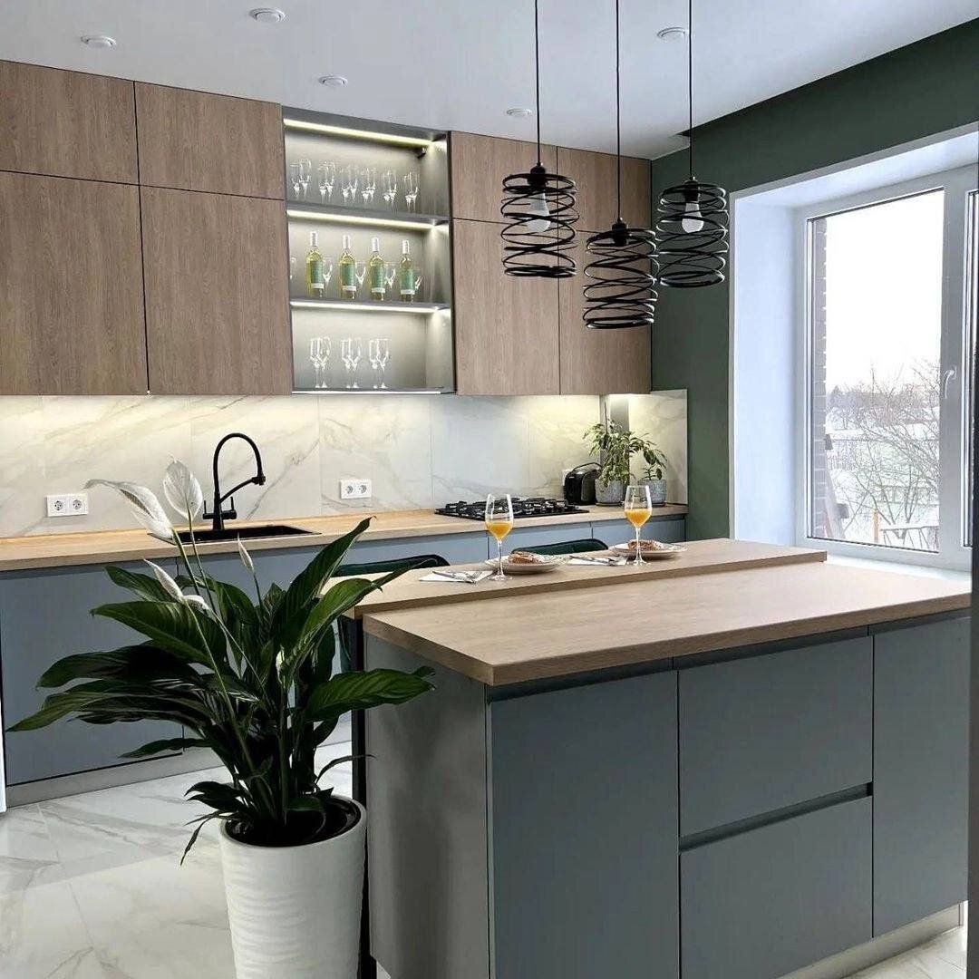 А вот и наша новая кухня. Объединили кухню с гостиной, немного расширили площадь и получили вот такую красоту. Я не хотела обычную кухню и вот что у нас получилось.