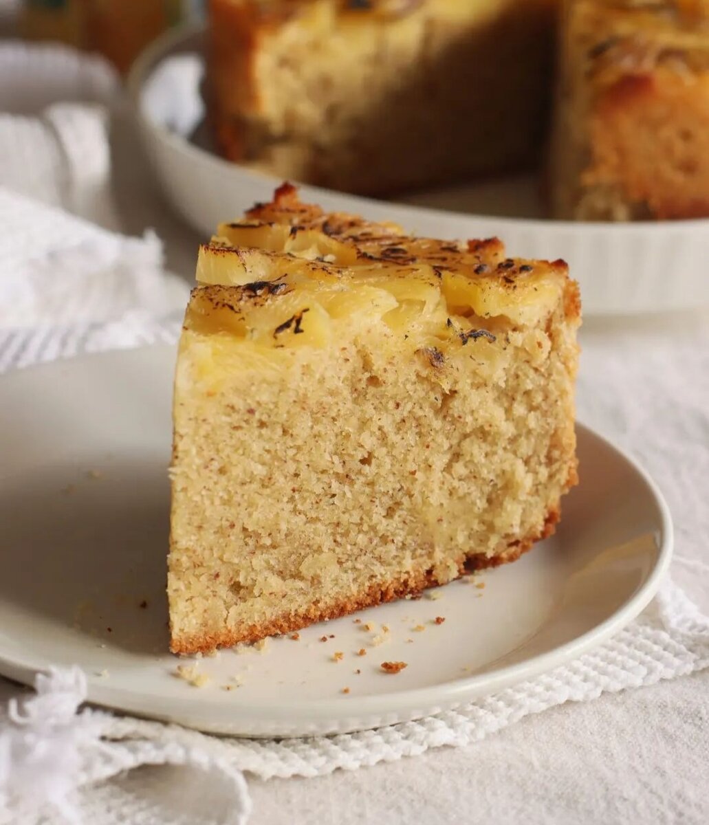 Привет, друзья ! Как ваши дела, как погода за окном ? У нас стабильно +3 +6 . В этом году даже на санках не катались, т.к. снега практически не было . Зато у нас есть вкусный рецепт ананасового пирога ! Первый раз готовила, получился очень вкусный, рекомендую 👍 ИНГРЕДИЕНТЫ : Мука пшеничная - 200 г, Мука миндальная - 50 г, Масло сливочное - 130 г, Сахар - 120 г, Яйцо - 2 штуки, Разрыхлитель - 5 г, Сода - 3 г, Ананас консервированный - 250 г, Сок лимонный - 10 мл, Молоко - 170 мл . ПРИГОТОВЛЕНИЕ : 1) Мягкое сливочное масло комнатной температуры взбиваем с сахаром . Добавляем яйца комнатной температуры, продолжаем взбивать . 2) Затем добавляем просеянную миндальную и пшеничную муку, лимонный сок, разрыхлитель и соду . Хорошо всё перемешиваем . 3) В два приёма вливаем немного тёплое молоко . Перемешиваем до однородности массы . 4) Форму для выпечки смазываем маслом . На дно формы выкладываем кусочки ананасов . Выкладываем тесто . 5) Выпекаем пирог в заранее разогретой д