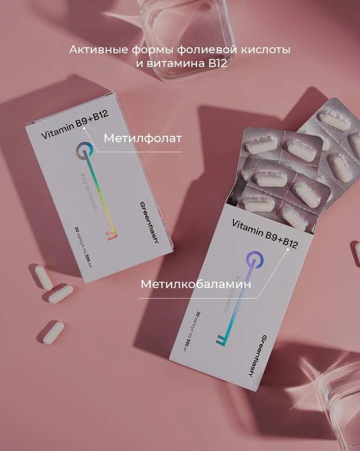 Работает группа В — восполняем баланс полезных веществ с Greenflash Фон жизни в современном мире не меняется: спешка, стрессы и гонка за красотой. Ultranovation R&D Laboratory отвечает на эти обстоятельства новинкой Greenflash В9В12 — самыми часто назначаемыми витаминами для репродуктивного здоровья В9 (фолиевая кислота) и В12 представлены в инновационных биодоступных формах: в виде метилфолата и метилкобаламина. Они обладают высокой активностью и эффективно корректируют симптомы дефицита данных витаминов Витамины В9 и В12 необходимы для: ▪️ работы мозга, активности, энергии и концентрации внимания ▪️ баланса нервной системы ▪️ здоровья кровеносной системы и предотвращения анемии ▪️ репродуктивного здоровья 💡 Курс Greenflash В9В12 подойдет женщинам, планирующим беременность, людям с ограничениями в питании, всем, кто хочет повысить энергию и работоспособность ☪️ Продукт сертифицирован по стандартам «Халяль» 🌍 Предложение действует в России, Казахстане и Молдове ▪️ 750 RUB Заказ