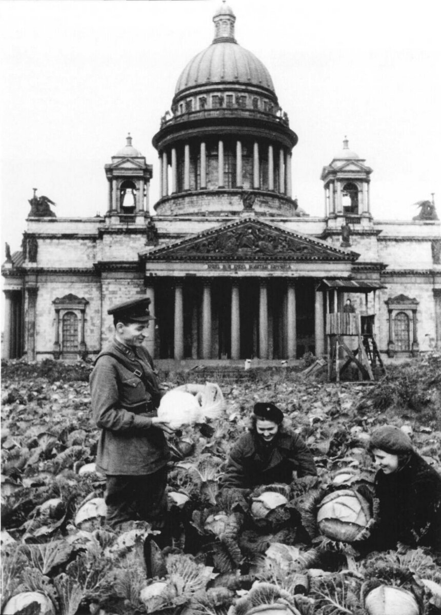 - Исаакиевский собор, следы шрапнели с западной стороны и где хранились экспонаты, что не успели вывести, внутри есть фото защитных сооружений и полей капусты, что выращивали повсеместно.