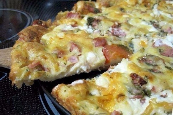 Ингредиенты Для теста: Сметана — 4 ст. л. Майонез — 4 ст. л. Яйца куриные — 2 шт. Мука пшеничная — 9 ст. л. Для начинки: Ветчина — 50 г Салями — 50 г Сосиски — 50 г Сыр твердый — 50 г Маслины — 6 шт. Томаты — 2 шт. Специи Майонез Масло растительное Приготовление: 1. В емкости смешиваем майонез и сметану. 2. Добавляем яйца и все взбиваем. 3. Кладем муку и снова все тщательно перемешиваем. 4. Готовим начинку. Ветчину, салями и сосиски нарезаем кубиками. Томаты тоже можно порезать кубиками, а можно тоненькими полупластинками. Маслины режем колечками. Сыр трем на крупной или мелкой терке — кому как больше нравится. 5. Сковородку слега смазываем растительным маслом. Вливаем тесто на сковородку. 6. Раскладываем сверху на тесто начинку, натертый сыр и посыпаем специями. Наносим сеточку из майонеза. 7. Ставим сковородку на небольшой огонь, накрываем крышкой и варим…или жарим…или печем нашу пиццу. Когда сыр расплавится, можно считать, что пицца готова. Вот такой вот совершенно простой ре
