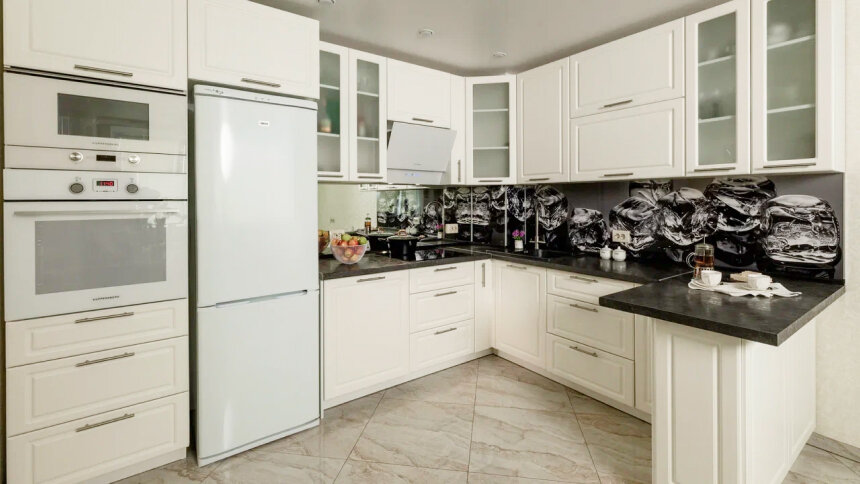 Тренды в дизайне интерьера меняются раз в 5 лет. Гнаться за ними бессмысленно. Но есть решения, которые смотрелись устаревшими уже лет 15 назад. Они не приносят пользы и уродуют кухню. Если у вас есть что-то из нашего списка, не терпите. Смените это немедленно! Фартук с фотопринтом Макросъёмка фруктов или виды городов на стеклянном кухонном фартуке были популярны в начале двухтысячных. Сейчас они выглядят так же нелепо, как стразы на кофточке или золотая сумочка. Возможно, фотопринты ещё вернутся в моду, но точно не в этой ипостаси. Современная кухня минималистична. Дизайнеры призывают осмысленно вводить акценты в её оформление. Фотография в интерьере не должна становиться фоном. Иначе она будет создавать визуальный шум. Шторы с ламбрекенами Имперские многоярусные шторы смотрятся органично в классическом парадном интерьере. Они хороши для помещения, выдержанного в стиле рококо, площадью от 50 м² и высотой потолков от 3,5 метров. Оставим в ламбрекены для Эрмитажа и Кремлевского дворца.