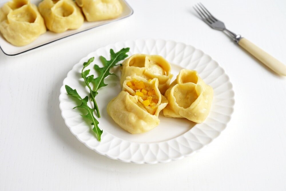 Лёгкое, но сытное блюдо - манты с тыквой на пару - ароматные и нежирные. Я очень рекомендую их попробовать, даже если в вашей семье не любят тыкву. Вкус у таких мантов изумительный. А себестоимость очень радует. Кстати, сейчас это блюдо есть в меню многих ресторанов, и оно популярно.Подавайте манты со сметаной или кусочком сливочного масла. С чёрным перцем или вовсе без дополнений. Рецепт взят отсюда Ингредиенты: Приготовление: Шаг 1 Подготовить все ингредиенты для мантов с тыквой на пару. Тыкву лучше брать мясистую, но не слишком сладкую. Для удобства её можно заранее очистить от кожи и семян, а также нарезать на крупные кусочки. Шаг 2 Подготовить тесто для мантов с тыквой на пару. В глубокую миску всыпать муку, сделать в ней углубление и добавить щепотку соли, воду и яйцо. При необходимости муку предварительно просеять, чтобы исключить попадание в тесто посторонних промышленных примесей, а также комочков. Шаг 3 Замесить упругое тесто. Оно не должно липнуть к рукам, должно быть дост