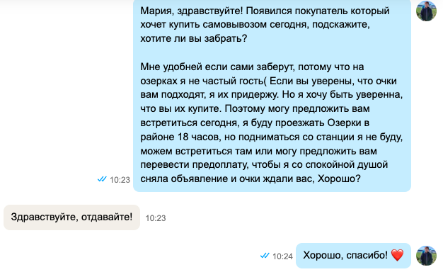 Всем привет! Сегодня я хочу поделиться с вами своим опытом общения с покупателями, которые просят отложить для них лот. Я не люблю такие просьбы и стараюсь вежливо отказать, т.к. есть неприятный опыт. Несколько раз меня просили отложить товар на несколько дней со словами "я точно-точно заберу", а потом просто не отвечали на сообщения. А я все это время сидела без запросов на лот, т.к. в объявлении указывала "бронь" и теряла бесплатные лимиты на авито, которые обновляются раз в месяц. Бывали случаи, когда человек приходил за одной вещью и просил показать забронированную. А мне приходилось отказывать, т.к. дала обещание и очень не хотелось негативных отзывов. Бывают случаи, когда я могу пойти на встречу и отложить лот для покупателя без предоплаты. Но стараюсь отвечать на такие просьбы уклончиво. Пишу что товар будет его ждать. Если вдруг появится покупатель, который готов забрать сегодня, я напишу и там мы уже решим как поступить. Таким ответом я, как бы, успокоила покупателя, но и оста